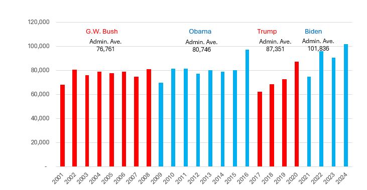 Something unprecedented happened on December 11, 2024, an event that passed with scant attention of but great importance to Americans and those regulated by the federal government. On that day, the Federal Register hit 100,000 pages in a single year. This was not even the record, but it is a noteworthy milestone. The prior record number of pages in the Federal Register in a single year was 97,110. That record was set in 2016 in the last year of the Obama Administration but was broken on December 6, 2024. Then, just a few days later, the Federal Register for 2024 broke the 100,000-page barrier.[1]